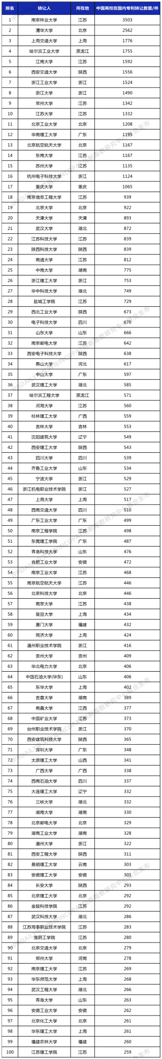近日,基于国家知识产权局数据统计的中国高校专利转让排行榜(TOP100)发布,截至2022年6月7日,中国高校在中华人民共和国国家知识产权局登记生效的专利申请权和专利权转让数量(不含港澳台)进行统计排名,我校排名中国高校榜单第51名。