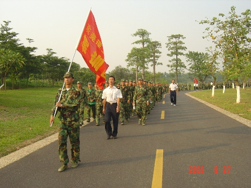 9 月 27 日下午,经过了十多天的艰苦的队列训练,军训团组成拉练队伍,雄赳赳、气昂昂地迈出校门来到滨湖路进行拉练。 队伍浩浩荡荡沿着松山湖湖边滨湖路徒步一个多小时。新生们第一次看见美丽的松山湖畔都显得特别的兴奋,他们迈着豪迈的步伐,唱着嘹亮的军歌。绵延整齐的队伍,给松山湖增添了一道亮丽的风景。一位新同学告诉记者,松山湖风景秀丽,是读书的好地方,他一定会好好学习,将来学有所成,报效祖国。