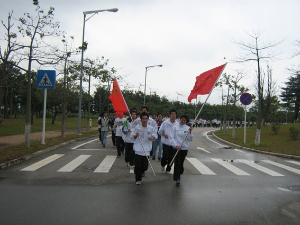 以政法系为主体的近五百名同学参加了活动,队伍从田径运动场出发,环校园一周,花费近一小时后回到田径场终点。这次活动旨在增强体质,进行生命教育,让广大同学领略生命在于运动的意义。