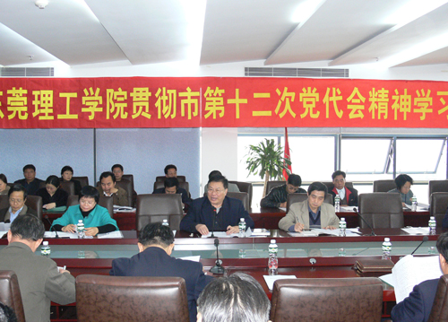 1月17日,学院召开党委中心组(扩大)学习会,集中学习贯彻东莞市第十二次党代会精神。学院领导杨晓西、王江水、黄碧莲、邹晓平、戴炳源等参加了学习会。学习会由王江水副书记主持。