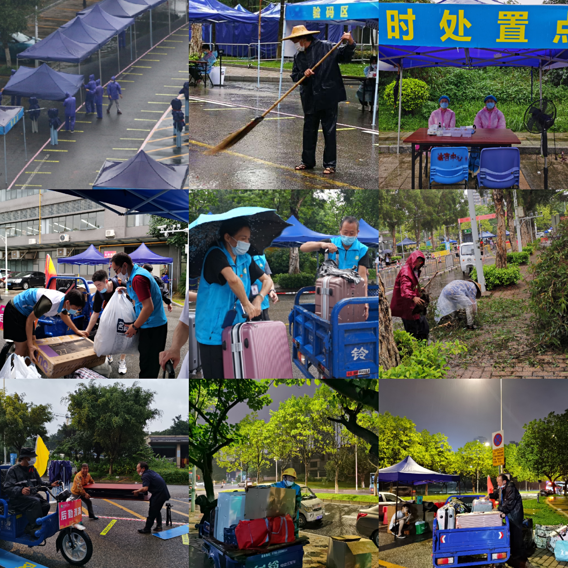 以学生返校为契机,后勤管理办完成了一系列保障工作,为学生顺利返校和离校保驾护航。6月7日,第三批学生返校当天,大风雷雨不断,为了不让学生及现场工作人员遭受雨淋,后勤工作人员迎难而上,没有退缩,早上六点便冒着大雨同心协力迅速搬运、搭建帐篷,形成紧密的遮雨通道;绿化工在雨中迅速清理大风雨折断的树枝,及时清理路障;环卫工在雨中清扫掉落的树叶和清理现场生活垃圾,冒着雨一车一车把垃圾运向校外垃圾场,保证校园的洁净美丽;食堂工作人员熬制热腾腾的姜糖水,在雨中为返校学生和现场工作人员送温暖;卫生所医务人员在帐篷下坚守岗位;后勤滴滴来回为返校离校学生搬运行李,在雨中,后勤人穿着最普通的雨衣,稍眯着双眼任由雨滴在脸上敲打把满载的行李送到终点。雨一直下,后勤人没有时间换上干爽的衣服,面对满地排放着的行李,要求主动加班,直至把最后一名学生行李运送至校外,此时已将近晚上九点了。据了解,担任后勤滴滴司机一职的绿化工们与所有水电工、环卫工一样,在早晨六点准时开始这一天工作。这一天有的后勤人一整天穿着湿漉漉的衣服,有的人多次淋湿换了四五次衣服。后勤直属党总支组织两个党支部开展党日志愿活动,充分发挥党员先锋模范带头作用,为学生提供后勤服务。