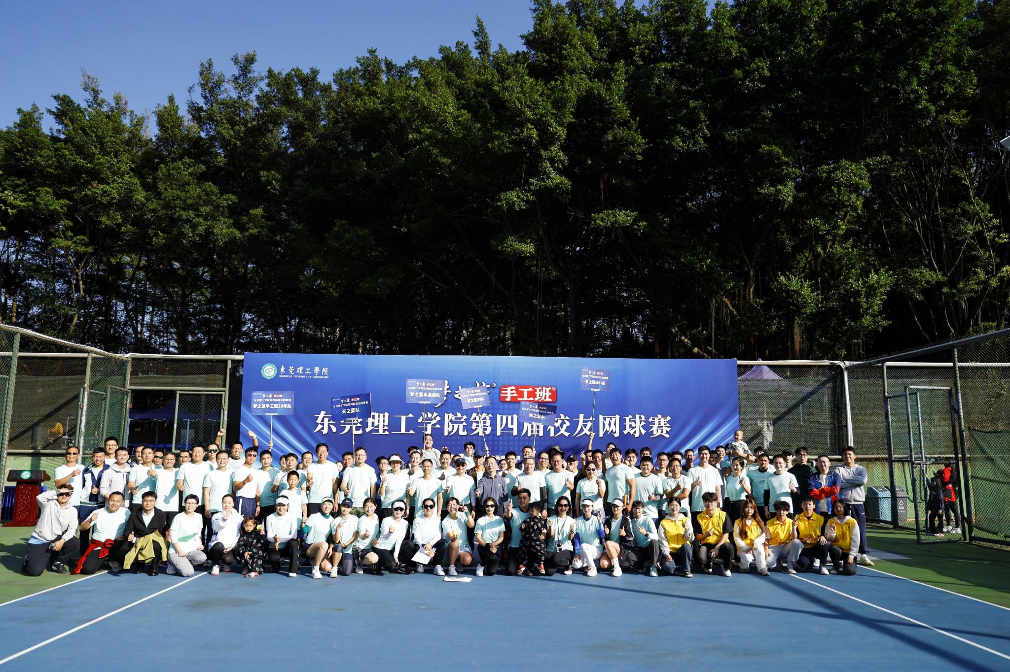根据规程,本届莞工校友网球赛为团体排名赛,6支队伍分别为天之蓝队、海之蓝队、梦之蓝手工班10年队、梦之蓝M9队、梦之蓝M6+队、梦之蓝水晶版队,比赛采用分组循环赛制,小组前两名进淘汰赛,小组第三名进行五、六名排名赛。